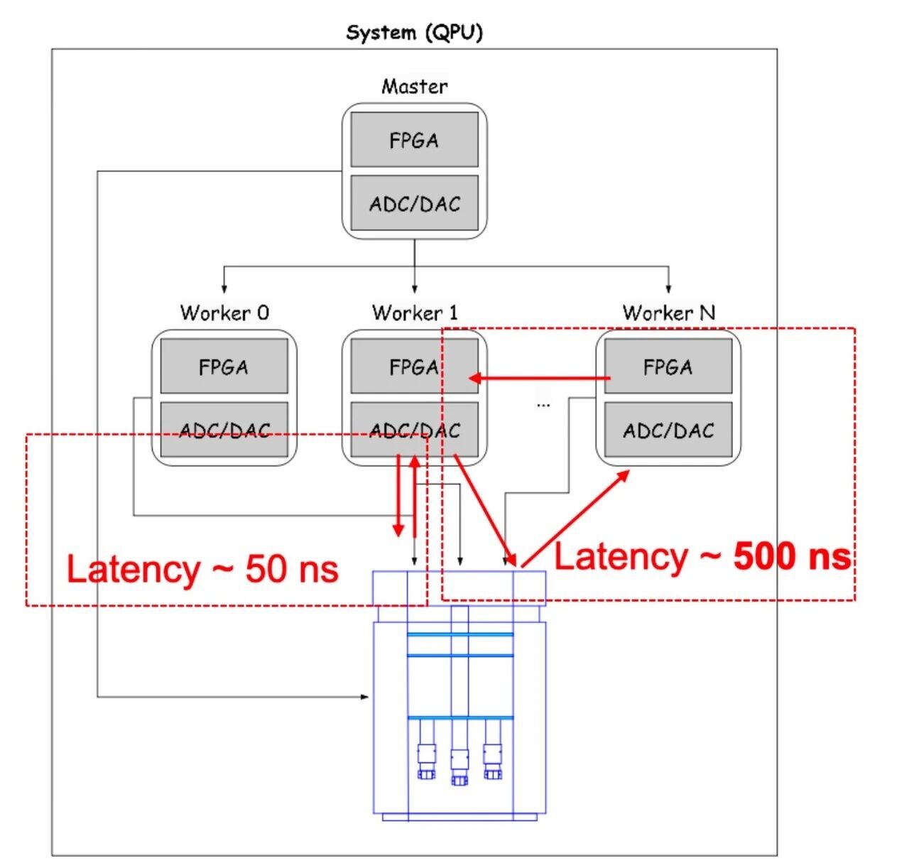 图1 QPU(量子处理器)控制架构中的测量-前馈路径及其时延